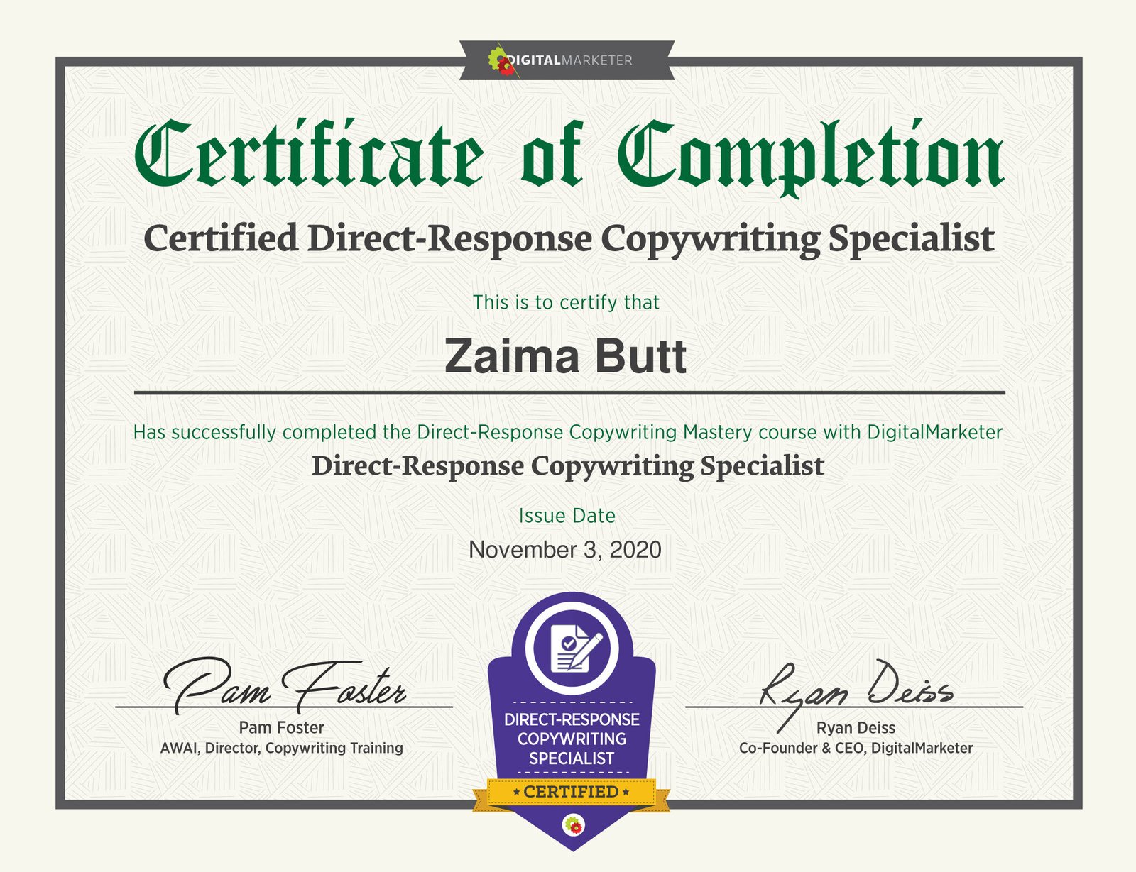 20+ Industry recognized certificates Including AWAI, Udacity, DigitalMarketer, & Simplilearn