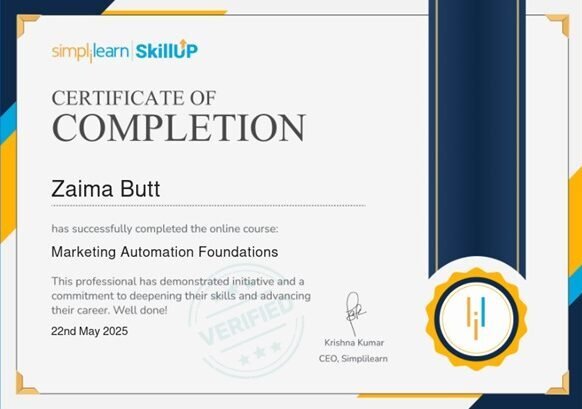 I’ve earned certifications from leading e-learning platforms including Udemy, Simplilearn, Coursera, LinkedIn Learning, AWAI, and DigitalMarketer – completing top-rated, best-selling programs taught by industry experts trusted by millions of students globally.